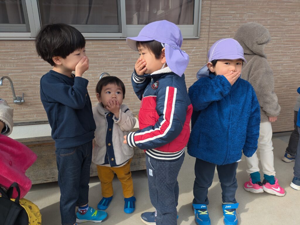 ギュッと口を結んで先生の誘導に従い、上手に園庭まで避難することができました🏃♂️💨